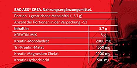 BAD ASS CREA یک مکمل پیشرفته و فوق‌العاده مؤثر کراتین با ترکیب چندگانه است که برای ورزشکاران حرفه‌ای، بدنسازان و تمام افرادی که به دنبال افزایش عملکرد عضلانی، قدرت انفجاری، افزایش حجم خشک و ریکاوری سریع هستند طراحی شده است.