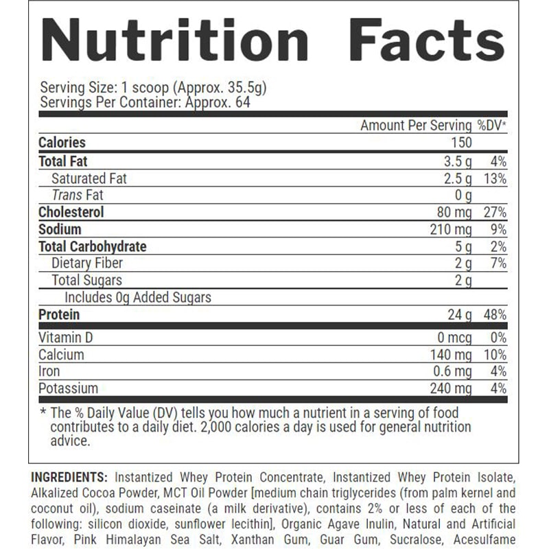 ارزش غذایی در هر وعده حدود ۲۴ گرم پروتئین خالص همراه با پروتئین کنسانتره و ایزوله است.