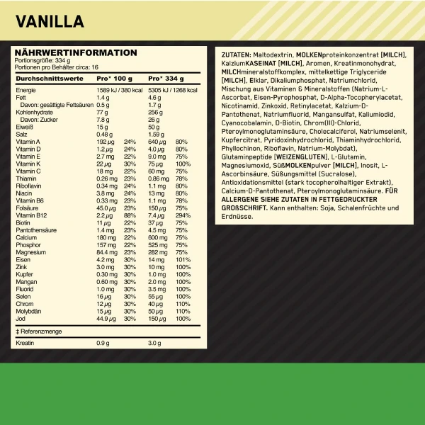 مکمل گینر سریوس مس اوپتیموم جایگزین وعده‌های غذایی اصلی نیست.